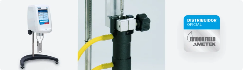 Por isso, recomendou-se o uso do adaptador com sensor de temperatura integrado, que se conecta diretamente ao viscosímetro e possibilita o registro simultâneo de viscosidade e temperatura.