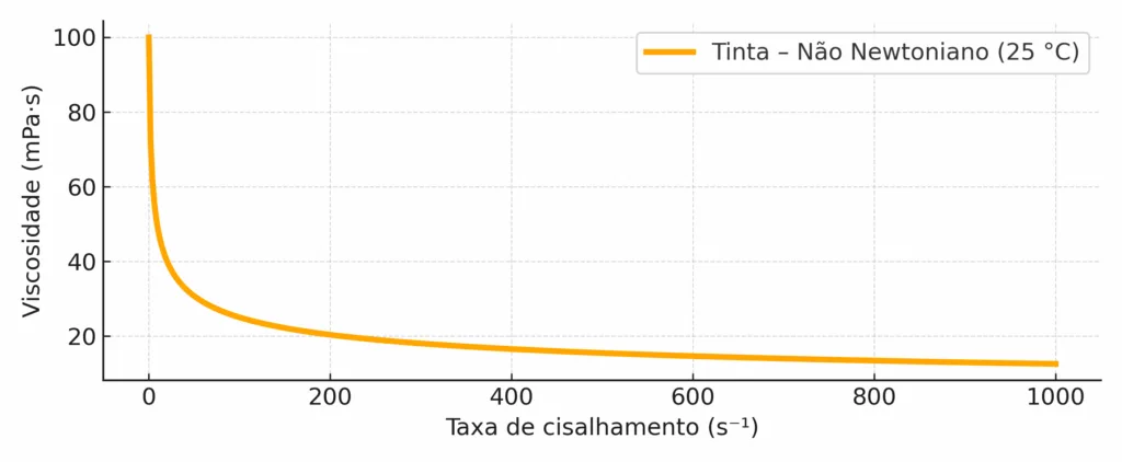 Já nos não newtonianos, ela é o fator decisivo que modifica o estado do fluido em tempo real. Por exemplo, uma tinta pseudoplástica flui melhor quando submetida a alta velocidade de aplicação, mas volta a ficar viscosa quando parada, evitando escorrimento.